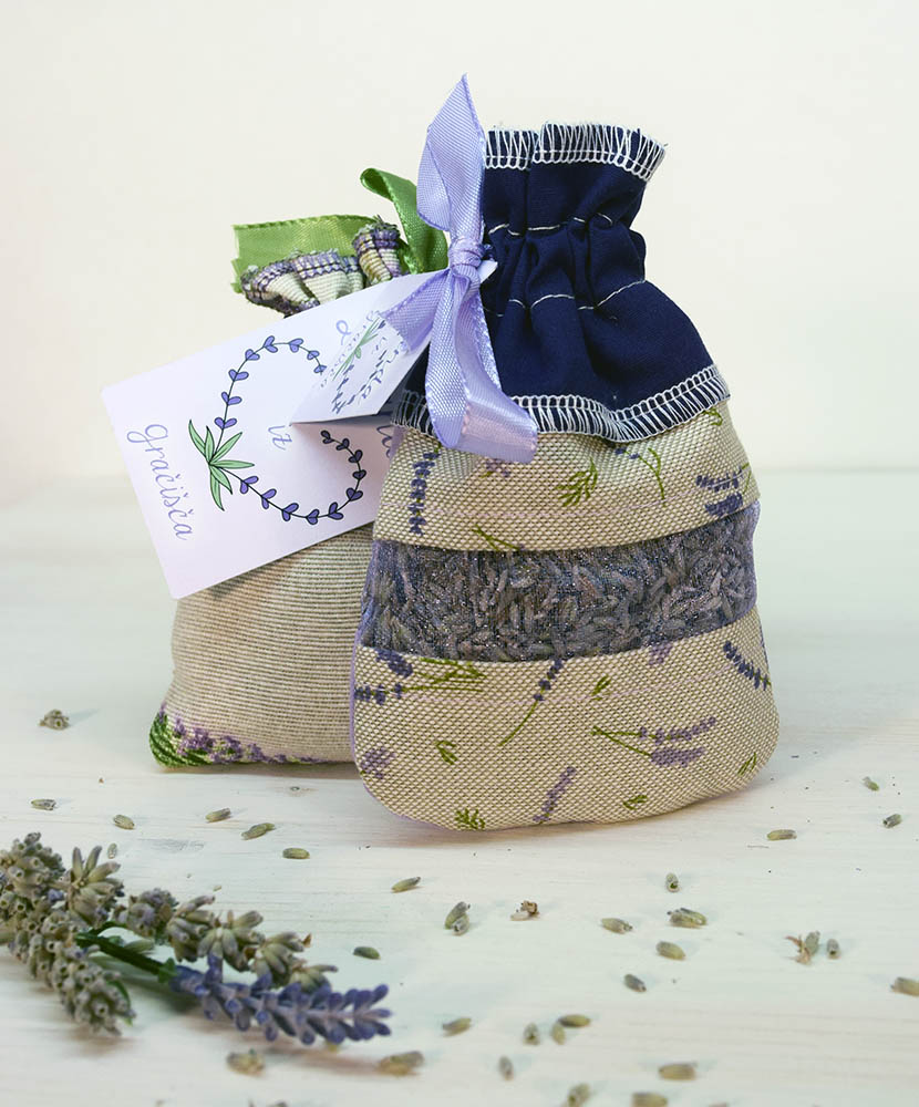 Sivkin mošnjiček je unikatna vrečka napolnjena z Lavando. Pri naročilu lahko izbirate med tremi vzorci vrečke.